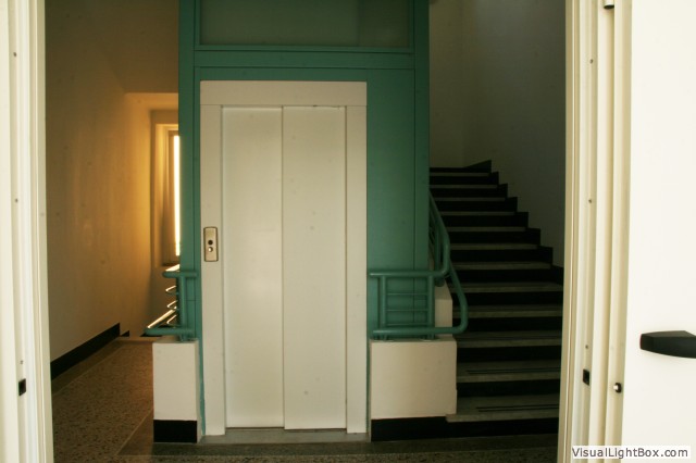 essendo presente originariamente solo una scala, l’uso dei piani superiori è stato sempre precluso ai portatori di disabilità motorie: la realizzazione, nello spazio delimitato dalle tre rampe, di un ascensore di dimensioni adeguate all’uso anche da parte di disabili in sedia a rotelle, consente l’ottimale fruizione di tutti i livelli da parte di tutti; di conseguenza è stata prevista la realizzazione di un servizio igienico per disabili ad ogni livello, anche nel rispetto della normativa scolastica.